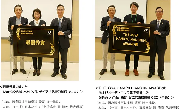 阪急阪神不動産より最優秀賞を含む合計5つの賞を、また、日本スタートアップ支援協会より協会ファンドから出資金として最大1,000万円※が授与される【THE JSSA HANKYUHANSHIN AWARD賞】を、それぞれ以下の通り各社に授与いたしました。