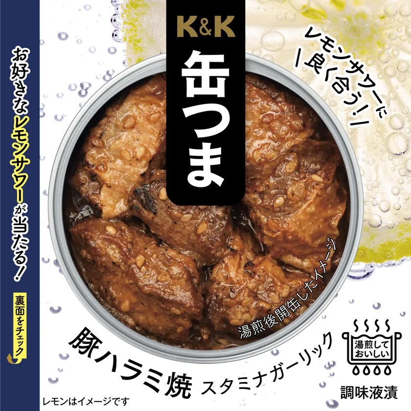 2022年9月に「レモンサワーに合う」をコンセプトに発売した「K&K缶つま 国産 牛すじ煮込み」に続く、第2弾の商品として、今回「K&K缶つま 豚ハラミ焼 スタミナガーリック」を発売いたしました。