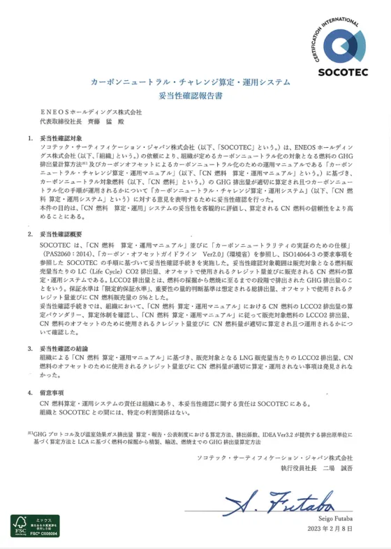 なお、本実証は、信頼性をより高めることを目的として、国際的な第三者機関であるソコテック・サーティフィケーション・ジャパン株式会社による審査を受け、カーボンニュートラル・チャレンジの算定・運用システム手順の妥当性を確認し、第三者認証を取得しました。