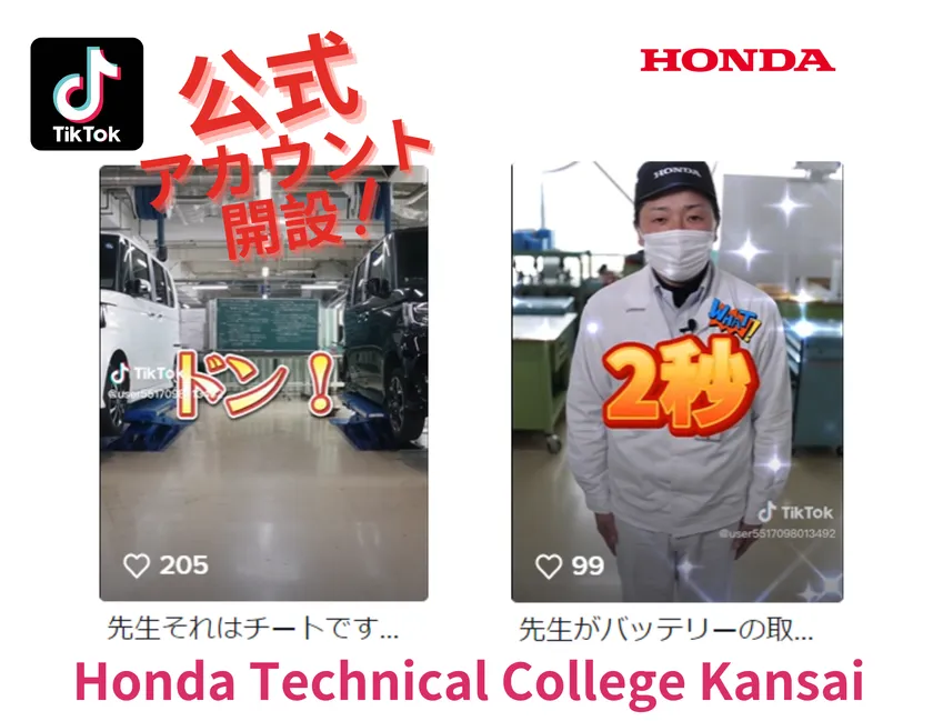 Hondaの自動車大学校「ホンダテクニカルカレッジ関西」が 「TikTok」の公式アカウントを開設 ~Z世代に向けて先生と学生情報を発信~
