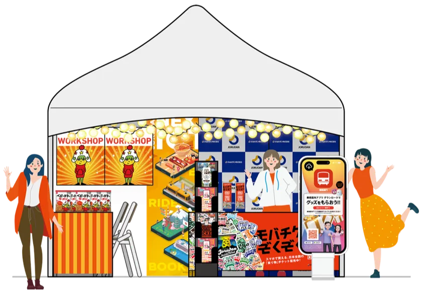 会場では、ジョルダンの経路検索「乗換案内」アプリをダウンロードしてくれた人たちに「ガチャ」を引いてもらい、当たりが出ると、おやつカンパニーのベビースターラーメンをプレゼントするほか、「おやつカンパニーワークショップ」を開催します。ジョルダンブースでお待ちしています。