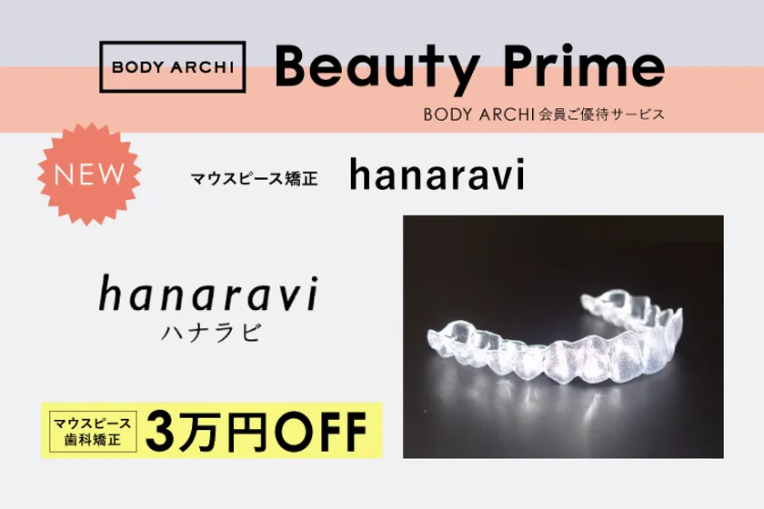 BODY ARCHI会員様限定ご優待サービス「BeautyPrime」に、マウスピース歯科矯正サービス「hanaravi」登場