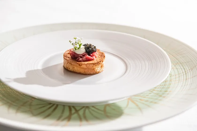 ≪湧水が育む皇帝の涙(キャビア)と小林市産宮崎牛のマリネ≫