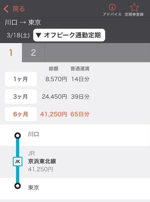●「オフピーク定期券」の定期運賃(通勤1・3・6か月)の計算に対応