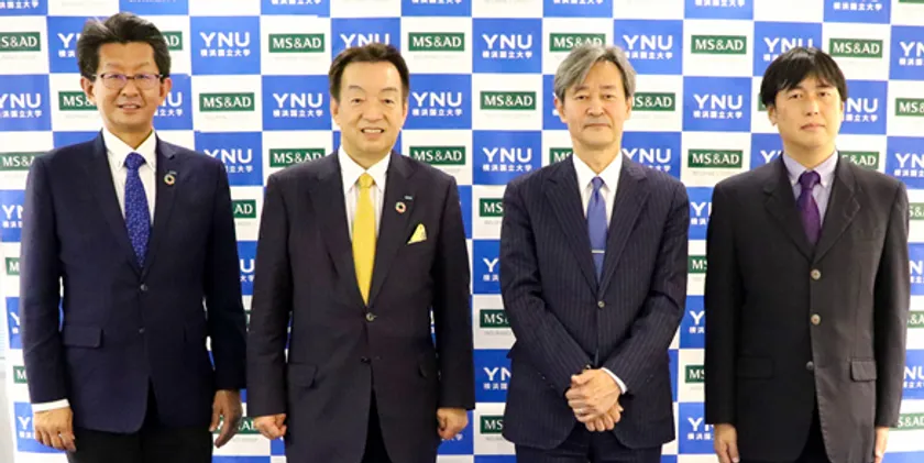 MS&ADインターリスク総研中村常務、MS&ADインターリスク総研中村社長、横浜国立大学梅原学長、横浜国立大学 台風科学技術研究センター筆保センター長・教授