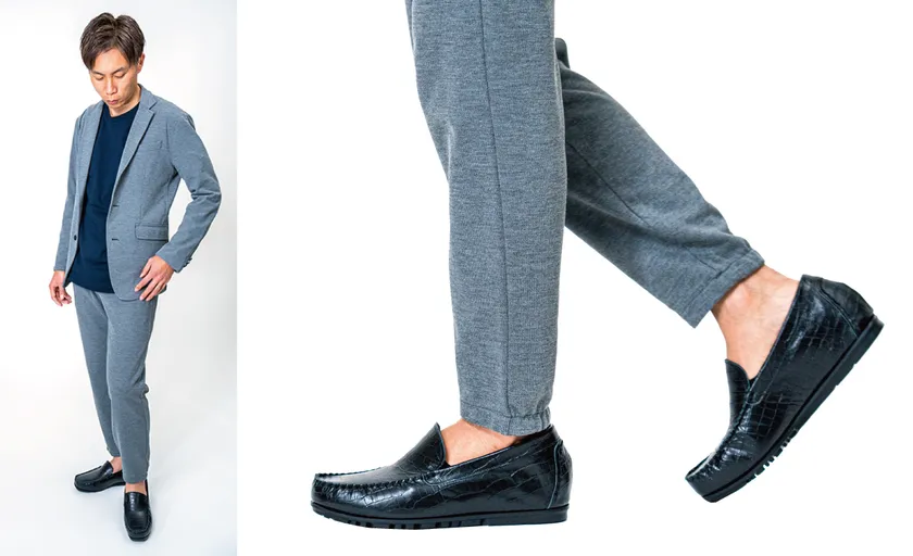 お出かけ需要が高まる中、スニーカーよりカジュアルになりすぎず、革靴よりもこなれた、ビジネスにも、カジュアルな装いにも合わせられる、柔らかで履き心地の良いシューズに仕上げました。