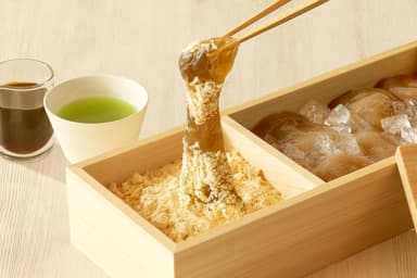 いちごと抹茶の2種のソースをご用意しました。お好みの食感に潰したいちごソース、抹茶ソースに、別添えの抹茶パウダー、ホイップクリームや砂糖をお好きな分量をまぜて、食感もまろやかさもお客様だけのオリジナルソースに仕上げられるセットです。