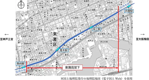(2)高架になる駅:2駅(青木駅・深江駅)