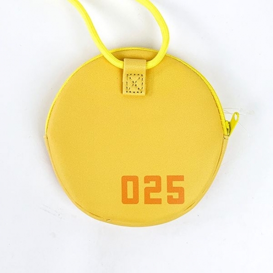 イエローカラーの丸いパースに、同色のヒモがついています。コインパースとして以外にも、用途はいろいろですよ♪