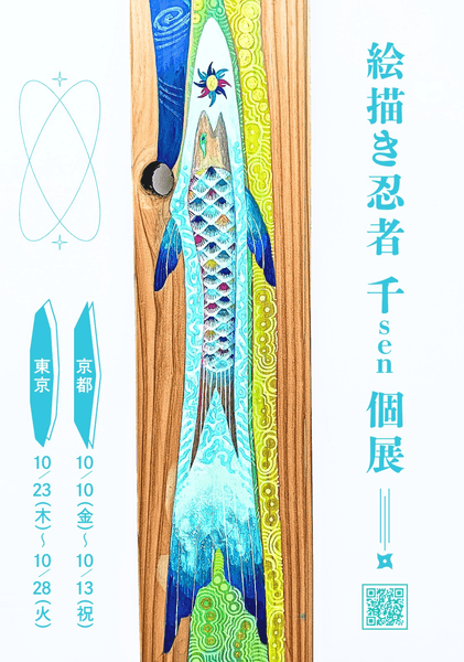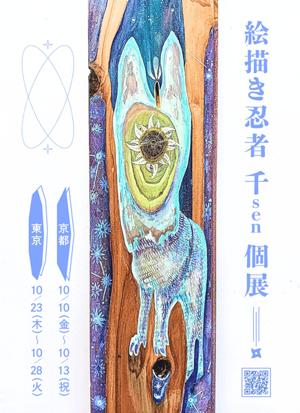 東京会場のWABI-和・美-では、ギャラリー内でのライブイベントも開催予定。笛と鈴の即興奏者のソウマヒカリと共演し、絵描き忍者千senが皆様の前で即興で絵を描き上げます。