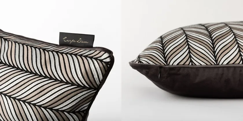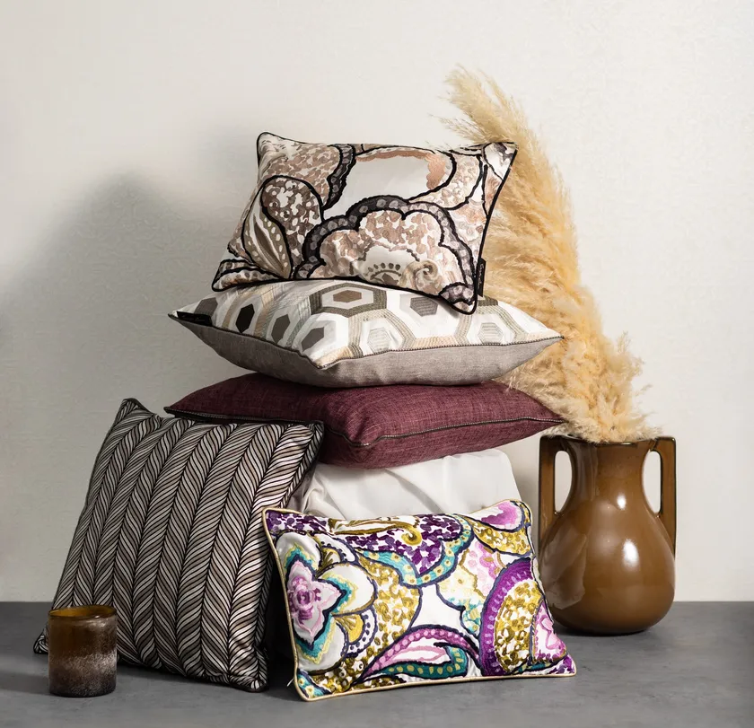 Carpe Diemのクッションは、カーテンのプロフェッショナルとしてファブリックを長年扱ってきた経験を持つジアスが、世界中のファブリックメーカーから卓越した審美眼で厳選した、ハイクオリティな生地だけを贅沢に使用しています。
