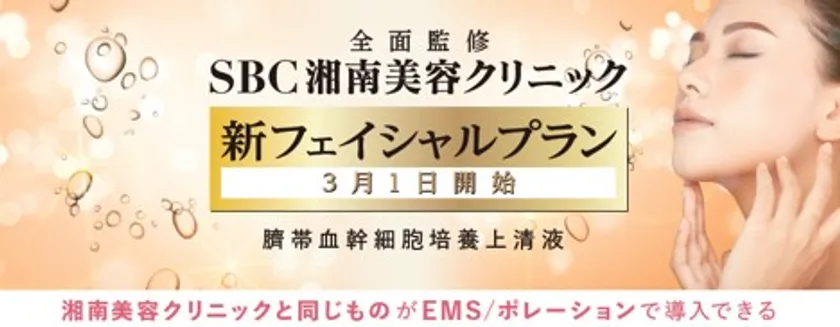 3月1日より提供を開始した、SBC湘南美容クリニック全面監修による新サービス「臍帯血幹細胞培養上清液コース」は、これまで美容皮膚科やクリニックでしか提供されていなかった最先端の美容成分※1をセルフエステで使用できる日本初※2のサービスです。