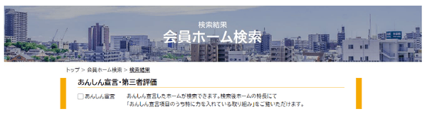 お客様のより良いホーム選びにお役立ていただきたいというものです。当協会の「個人のお客様・消費者向けサイト」では、あんしん宣言を公表したホームの取り組みインタビュー記事もご紹介しております。