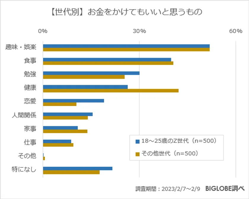 「趣味・娯楽」は各世代共通。Z世代は「食事」「勉強」。