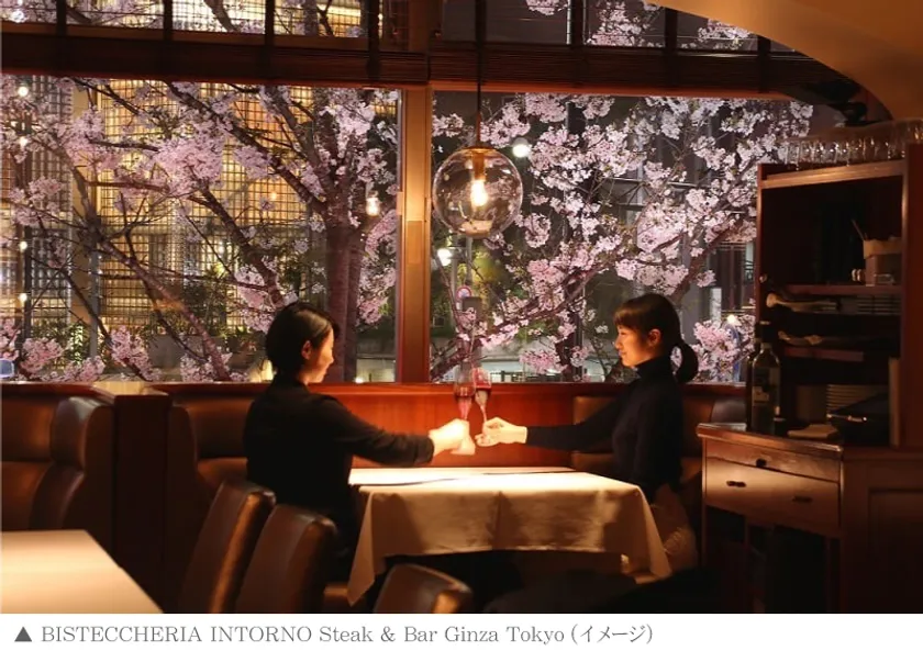 西銀座デパート(所在地:中央区銀座4-1)2階のレストラン『ビステッケリア イントルノ(ステーキ・イタリアン)』『銀座炎蔵(焼肉)』では、今年も桜の開花にあわせて桜の見える席のご予約を受け付けています。