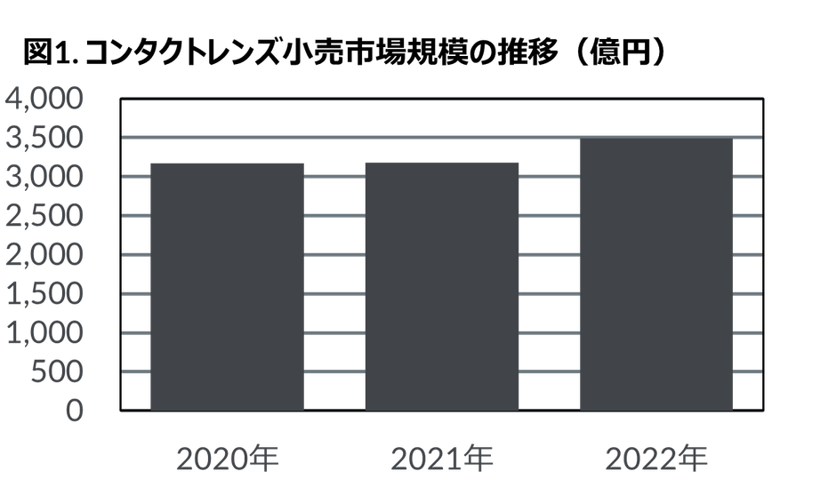 ・2022年のコンタクトレンズ小売市場は、販売金額前年比10%増の3,486億円