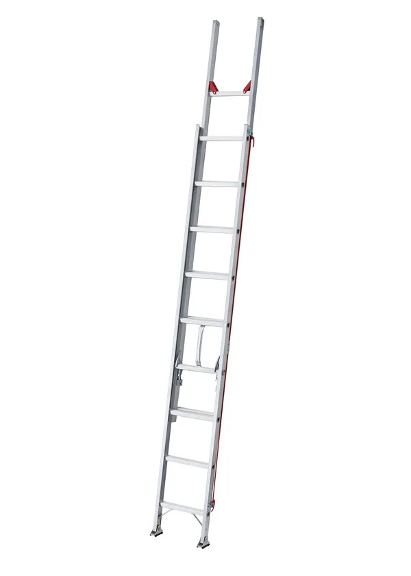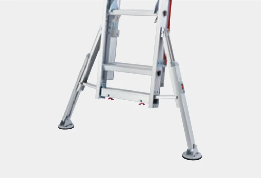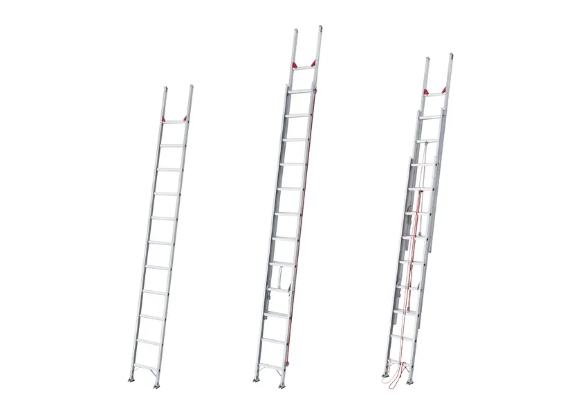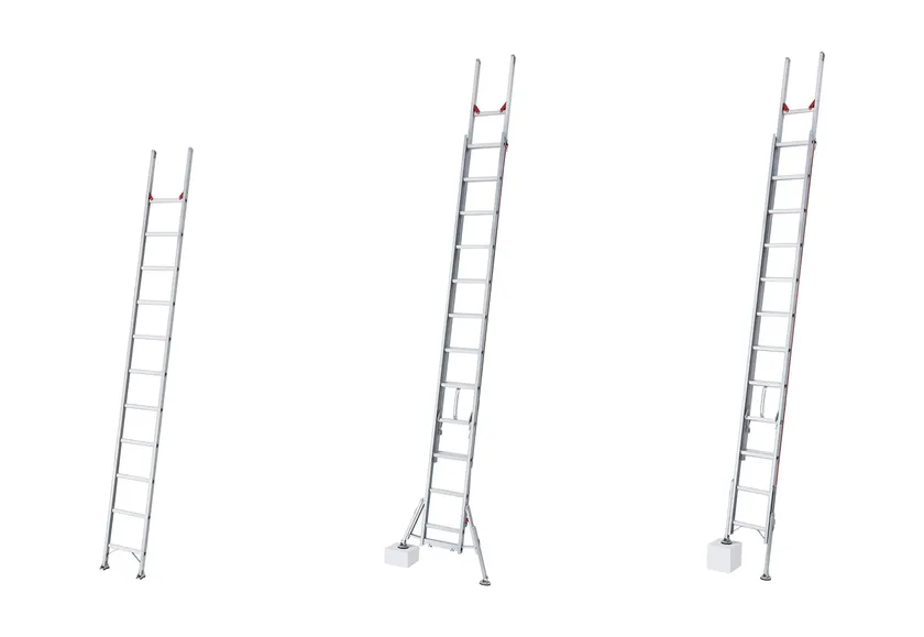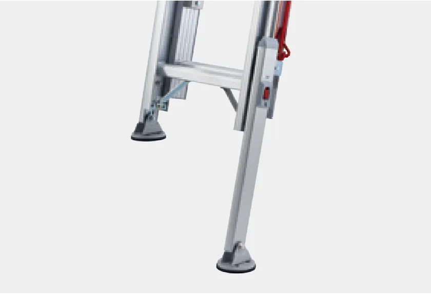 伸縮脚とスタビライザー(安定性補助器具)を標準搭載した、2連はしご、3連はしご