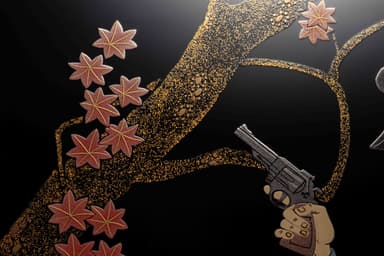 ルパン一味を本蒔絵で表現しました。伝統の技法で細部まで手描きで再現し、ルパンは桜、次元は紅葉・五ェ門は朝顔、不二子は梅とキャラクターごとに四季の花をデザインとしてあしらいました。