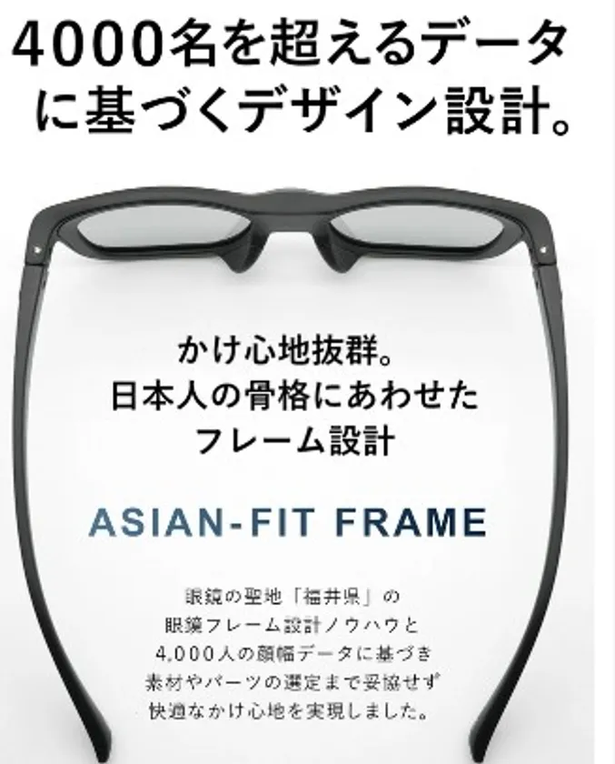4,000名を超える日本人の頭部データを基に、かけやすさを追求したフレーム設計を行っています。