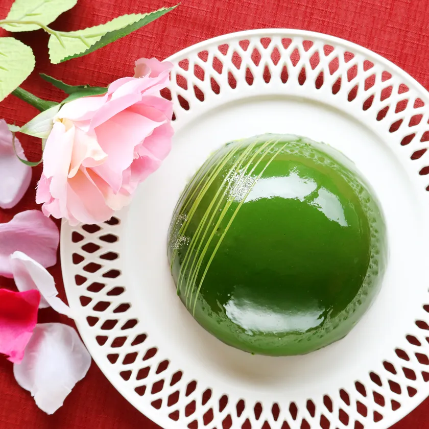 ■鮮烈な緑色と球体が作り出す、美しいドーム型ケーキ「Matcha Planet」