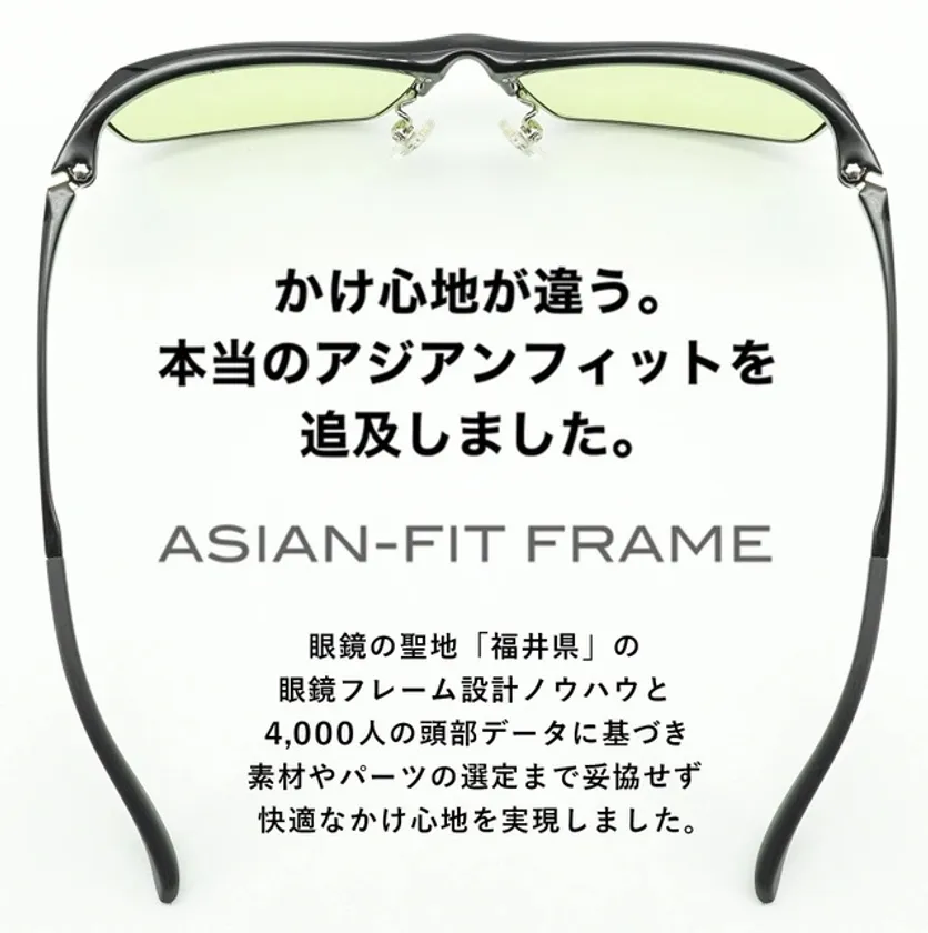 4,000名を超える日本人の頭部データを基に、かけやすさを追求したフレーム設計を行っています。