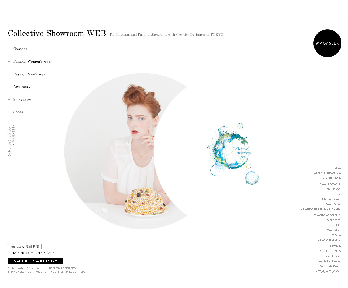 総合ファッション通販サイト「MAGASEEK」を運営するマガシーク株式会社(本社:東京都千代田区、代表取締役社長:井上 直也、以下「マガシーク」)は、日本の有望な若手デザイナーの支援を目的として開催した日本初のWEB展示会「Collective Showroom WEB(コレクティブショウルーム ウェブ)」の第二弾となる「Collective Showroom WEB 2nd(コレクティブショウルーム ウェブ セカンド)」を、2013年4月15日より期間限定で開催いたします。