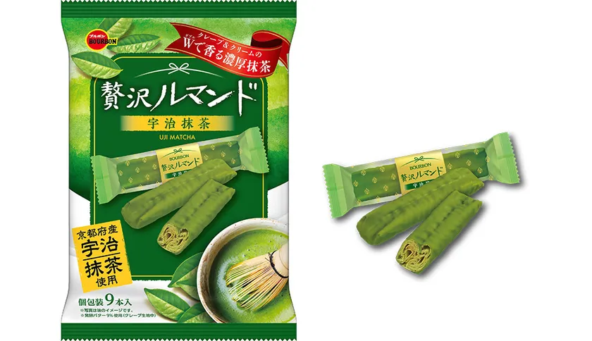 株式会社ブルボン(本社:新潟県柏崎市、代表取締役社長:吉田 康)は、濃厚な宇治抹茶がクレープ生地とクリームのダブルで香るルマンド「贅沢ルマンド宇治抹茶」を2023年4月4日(火)に新発売いたします。