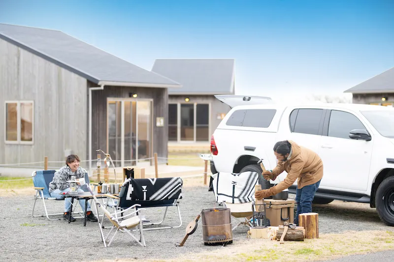 ◆ グランピングコテージ、トレーラーハウス、バンガローなど多様な宿泊スタイルが充実し、車でそのまま乗り入れられるオートキャンプサイトも 2 倍に拡大。