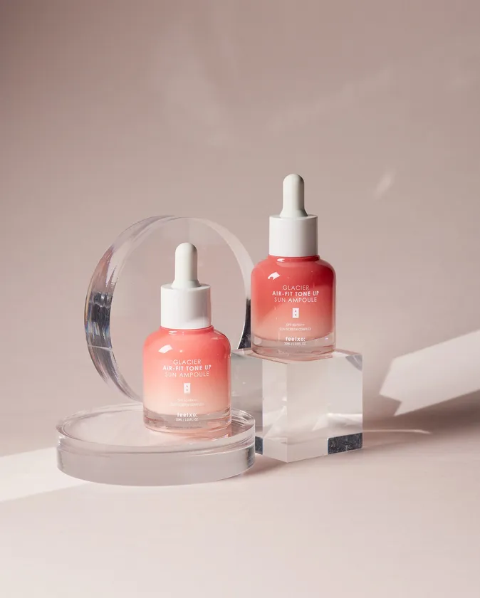 feelxoの新製品、「グラシアエアフィットトーンアップサンアンプル」は、たった1滴でお肌を明るくし、自然なトーンアップが期待できるアンプルタイプの商品です。また、SPF50 PA+++の有機紫外線遮断剤を使用しているため、従来のトーンアップクリームとは異なり、紫外線からお肌をしっかり守ってくれます。