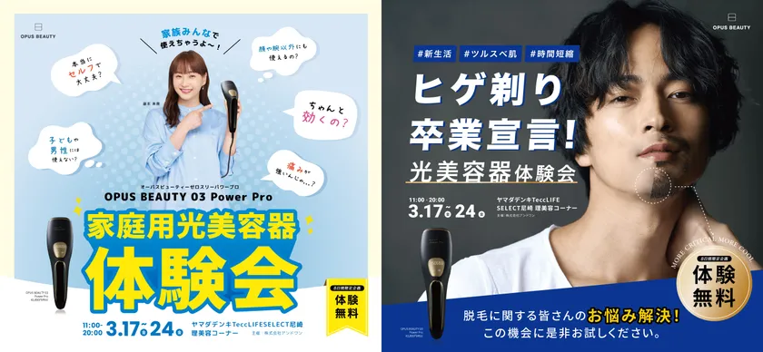 ヤマダデンキTeccLIFESELECT尼崎店にて、家庭用光美容器 「OPUS BEAUTY 03 Power Pro」の体験販売会を 2023年3月17日より開催 ~サロン級の効果を実感~