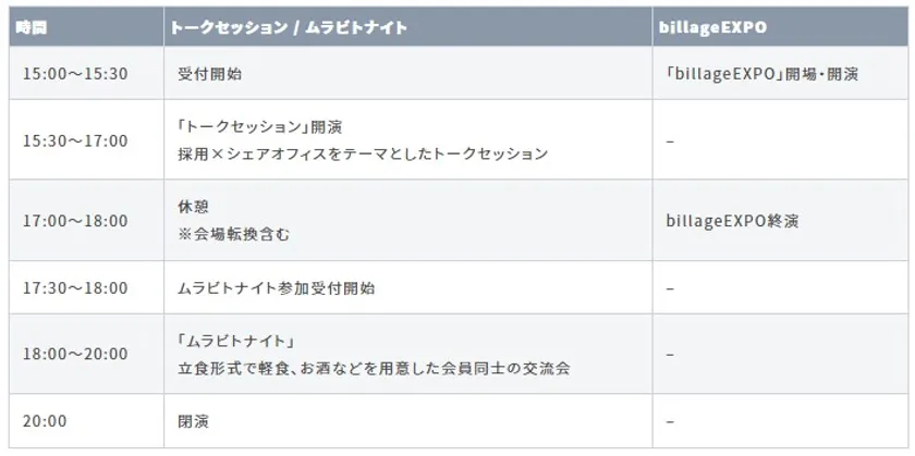 株式会社MJE(本社:大阪市中央区、代表取締役:大知 昌幸)が展開するシェアオフィスbillage(ビレッジ)は、2023年4月12日(水)に、billage OSAKA 野村不動産御堂筋本町ビル(所在地:大阪市中央区)で開催する、billage開業5周年記念イベント「ムラビトフェスタ」内においてスペシャルトークセッション「これからの採用は“カジュアルな場”がポイント」を実施します。