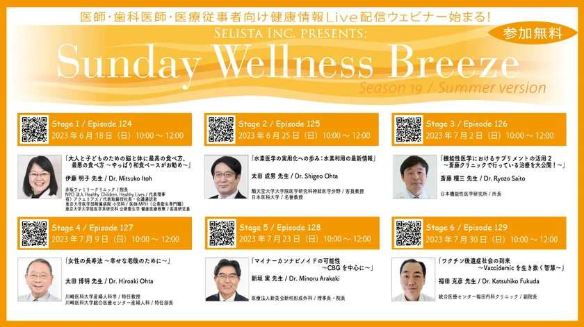 医師・歯科医師・薬剤師・医療従事者限定無料オンラインセミナー 抗加齢・生活習慣病予防・最適健康医療の最新情報が学べる! 『Sunday Wellness Breeze Season 19』 全6講演開催決定/セリスタ株式会社