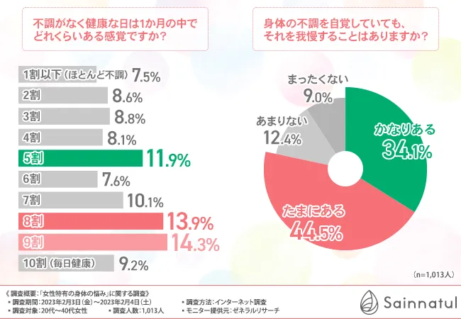8割近くの女性が、身体の不調を自覚していても我慢することがあるようです。