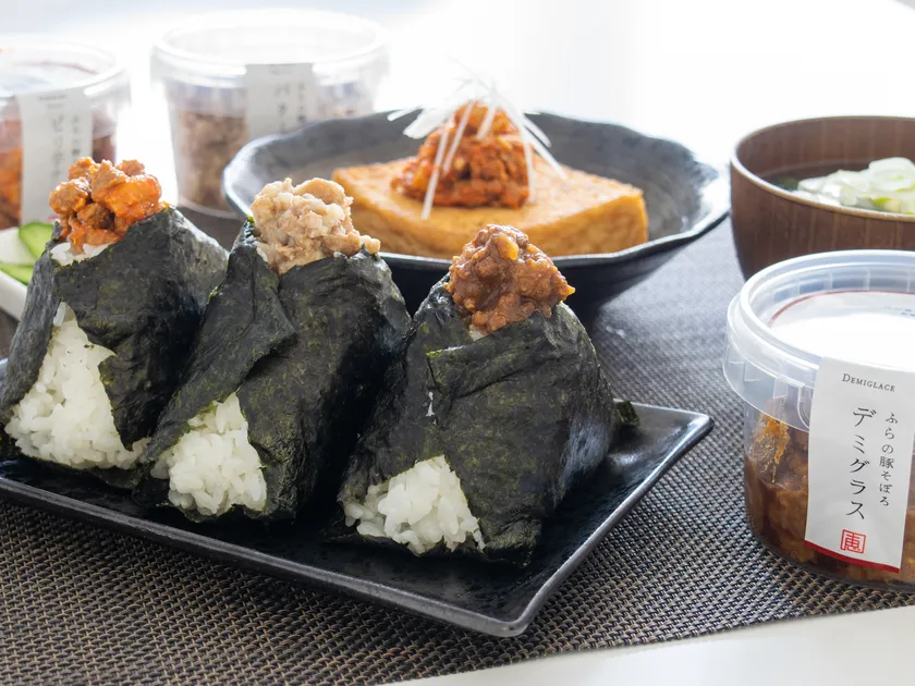 (3)ふらの豚そぼろ ピリ辛ナッツ/バター醤油/デミグラス