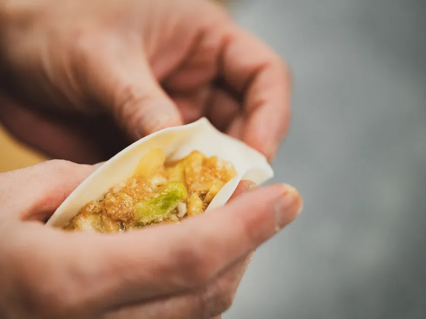 中に入れる餡はもちろん、皮の生地を練るところから餃子を包むところまで、工程のほとんどを手作業で製造しております。餃子の製造には温度管理や食材の水分量に合わせたバランスの調整等、繊細な作業が必要とされる為、数多く生産するよりも確実に美味しい商品をお客様へお届けすることを優先して手作業でお作りしています。