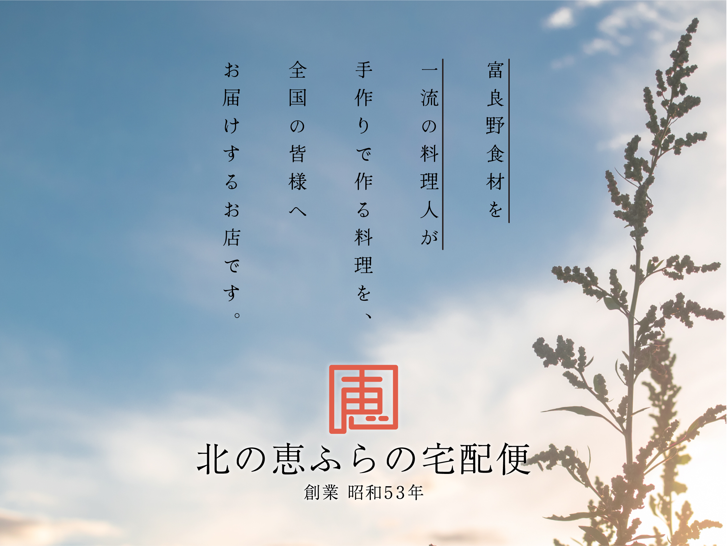 「ふらの食材×職人×手作り」を開発のコンセプトに、本来ならば富良野でしか味わうことができない地元食材のおいしさを引き出した料理を全国に販売する冷凍食品のEC事業です。商品は専属の料理人が試行錯誤を繰り返し、およそ1年かけて開発。一つ一つ手作りしたものを最新の技術で急速冷却し、料理の鮮度を保っている為、いつでも出来立ての料理をお召し上がりいただけます。