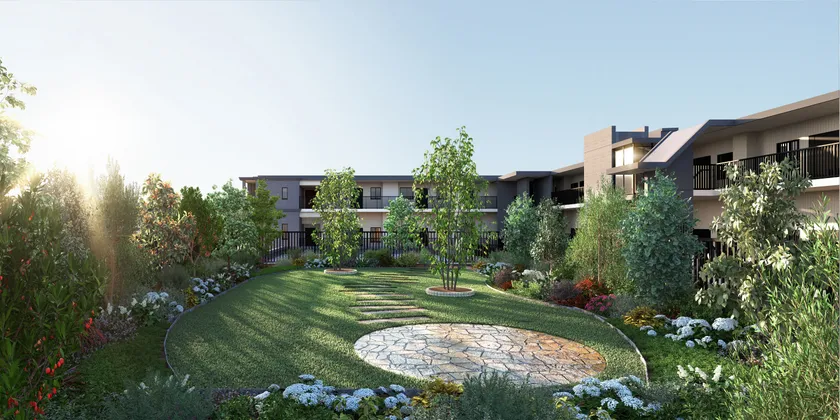 開発区域面積10,000m2超の敷地には、従前の地形を活かした低層のvillaを6棟配置。眺望と採光、開放感が高く、ゆとりを感じるプランニングを目指しました。