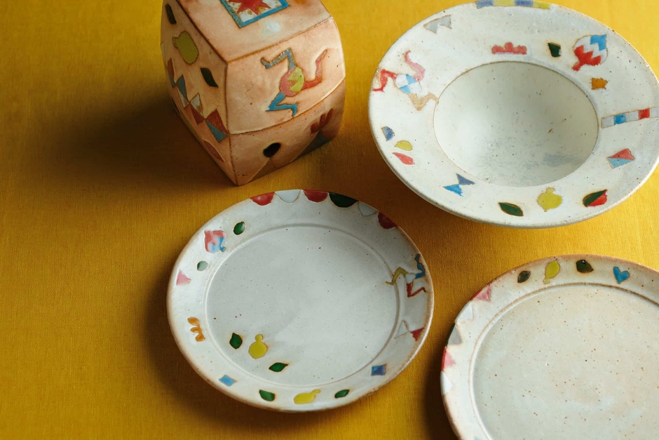 岡山県出身。陶芸家吉川正道氏に弟子入りし、7年間の下積みを経て独立。カラフルな釉薬を使った、サーカスの賑わいを感じさせるポップなデザインが魅力。自身のひょうひょうとしたキャラクターも人を惹きつけてやまない。