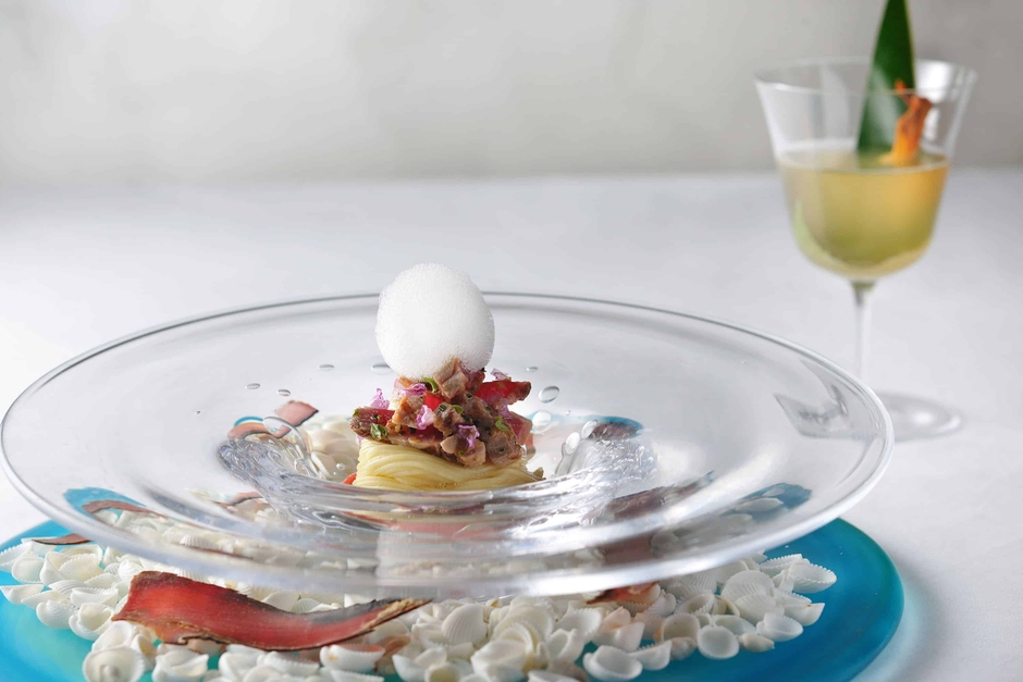 【星のや沖縄】沖縄で親しまれている食材の新たな魅力に出会う 「琉球シチリアーナ」春のディナーコース提供開始 ~月桃の香りや島らっきょう、ゼンマイで春を味わう~|開始日:2023年3月1日