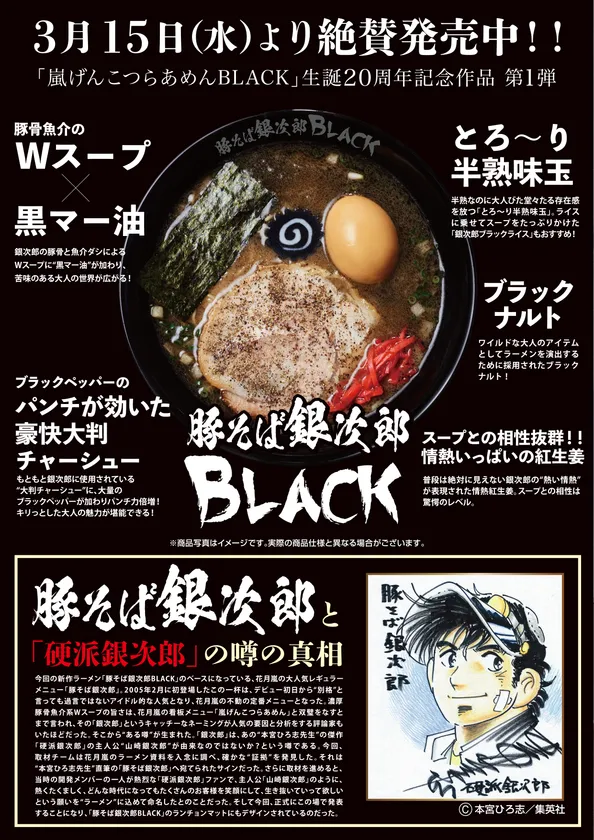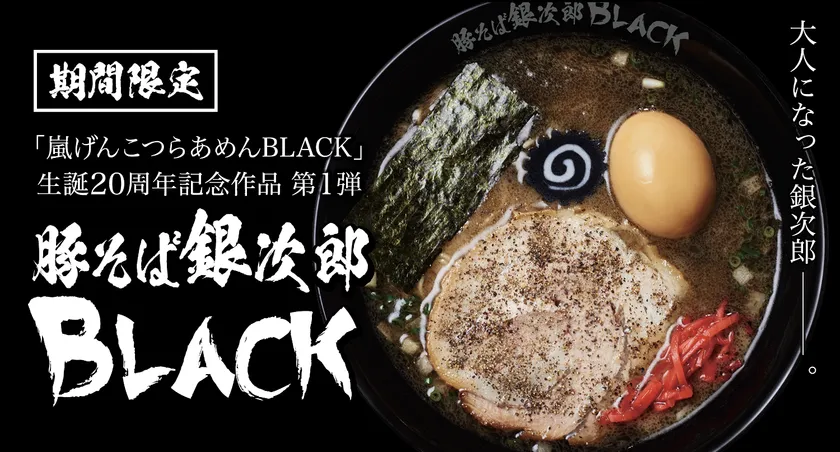 「嵐げんこつらあめんBLACK」生誕20周年記念作品第1弾 『豚そば銀次郎 BLACK』3月15日(水)より期間限定で販売開始!