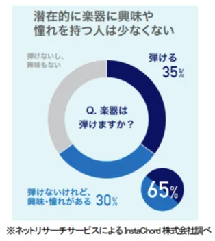 Web アンケート調査※によると「楽器は弾けますか?」という問いに、35%が「弾ける」と答え、また弾けないと回答した半数近くが「興味・憧れ」を持っています。弾ける人と合わせて6割以上が楽器に対して関心を持っていると言えます。誰でも簡単に弾ける本製品は、その潜在層すべてがターゲットの楽器です。簡単でありながらコード進行の理解に繋がり複雑なコードを弾きこなす奥深さも兼ね備えるなど、初心者だけでなく経験者も十分に満足できる仕様により楽器演奏の楽しさや上達の喜びを味わうことができます。また演奏のサポート体制も充実し、無料で10万曲以上の楽譜を本製品向けのコードナンバーに変換可能な機能の提供に加え、レッスン動画や演奏動画などさまざまなコンテンツを取り揃えております。