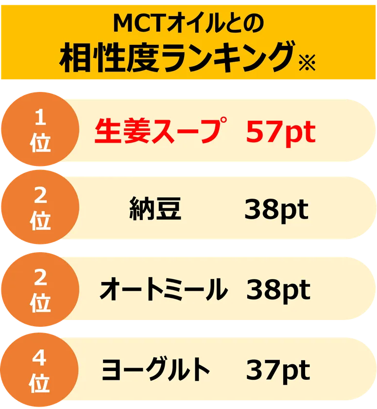 ~参加者が選ぶMCTとの相性度1位は「生姜スープ」!~