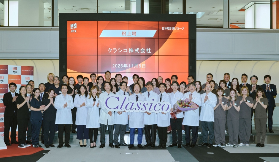 テーラード技術を取り入れた白衣を中心に、メディカルアパレルの企画・開発・販売を行うクラシコ株式会社【創業:2008 年 / 所在地:東京都港区 / 代表取締役 CEO:大和 新(おおわ あらた)】は、2025年11月5日(水)に東京証券取引所グロース市場へ上場いたしました。