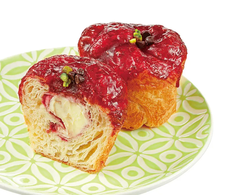 クリーミーなチーズに甘酸っぱいフランボワーズジャムで華やかに。クロワッサンの中にマスカルポーネチーズ、フランボワーズジャムを上掛け。春風を感じられる逸品。