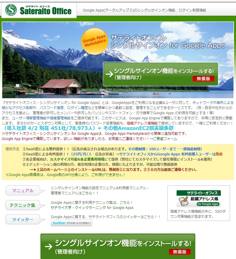 <サテライトオフィス・シングルサインオン for Google Apps に関するURL>