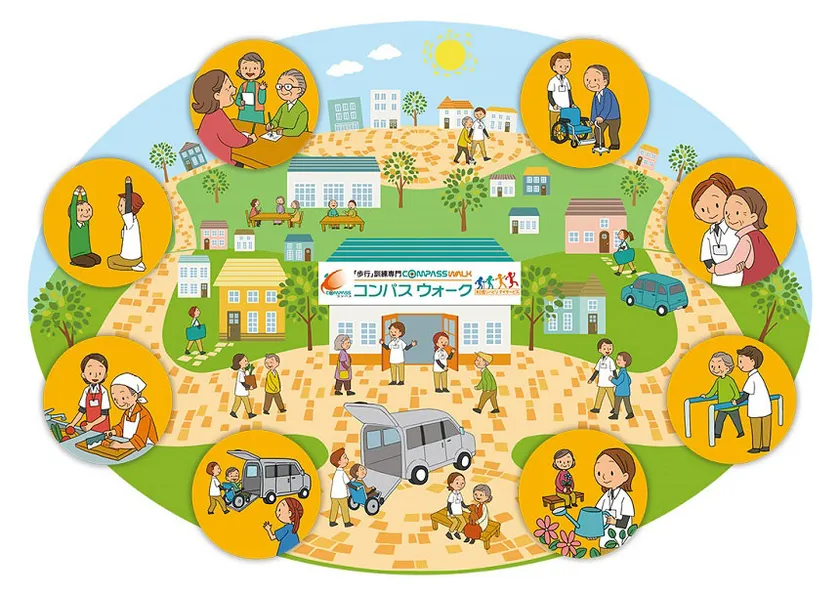 400m~500mの範囲で展開する小規模で、顔の見える地域密着型の包括システム「コンパスヴィレッジ構想」を中心に事業展開しています。