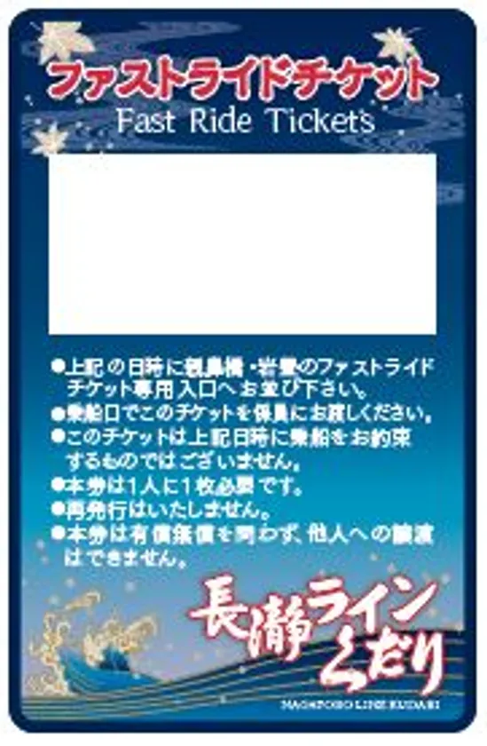 「WEB優先サービス」を事前に受付したお客様には、ご乗船日当日、長瀞ラインくだり本部にて乗船券をお買い求めの際に、混雑状況に応じて、ファストライドチケットを発行いたします。