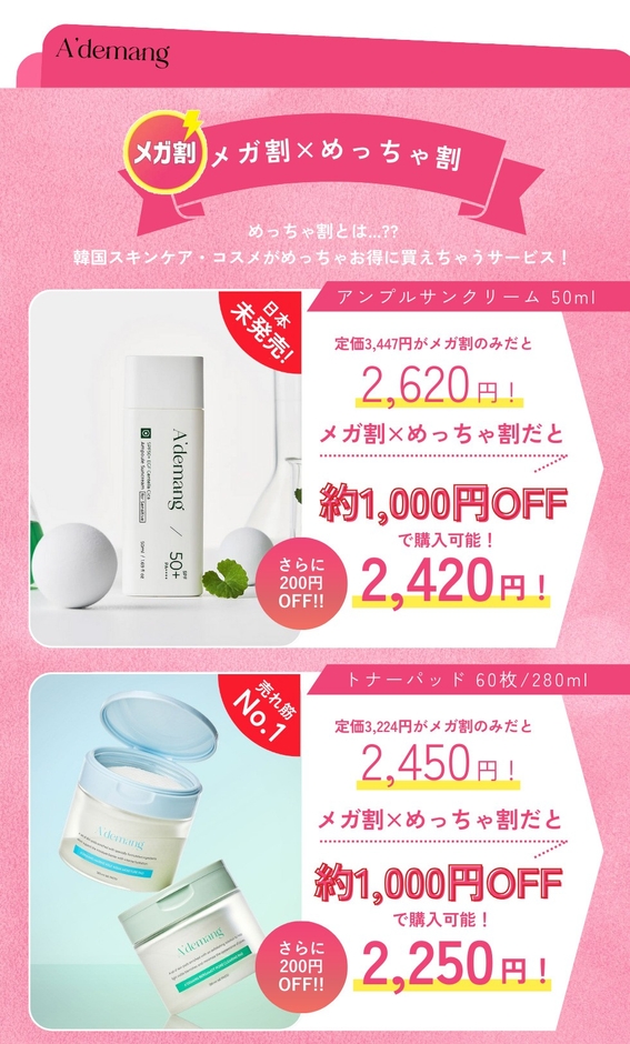 韓国人気スキンケアブランド「A'demang(アドマン)」の日本未発売アイテムがQoo10メガ割対象!『めっちゃ割』第三弾も開催!