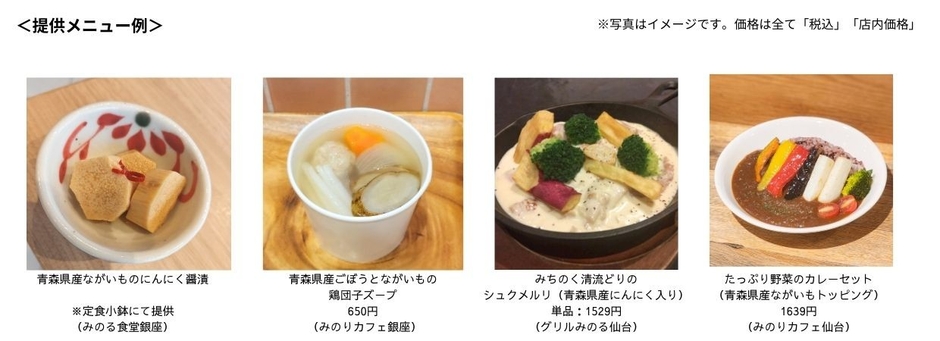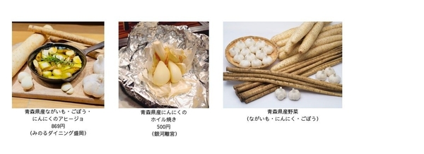 フェアでは、全国トップクラスの生産量を占め、秋から冬にかけて出荷最盛期を迎える青森県産「ながいも」「にんにく」「ごぼう」をふんだんに使用したメニューを提供します。