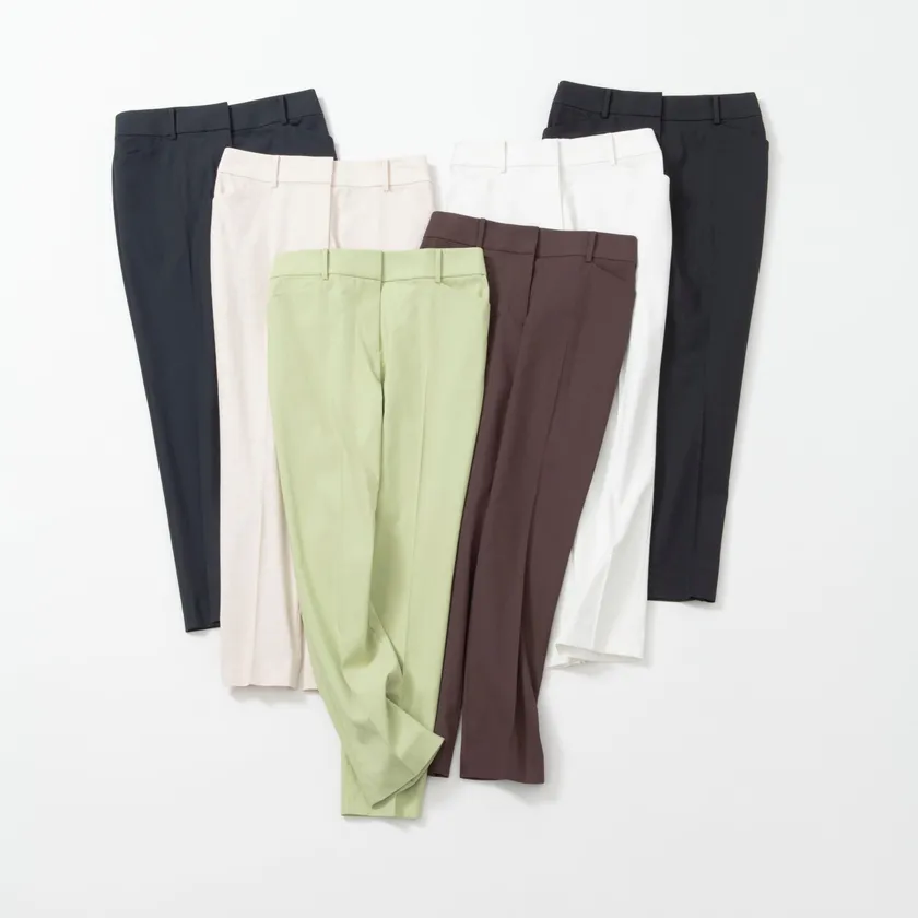 「PLUS STYLE スティックパンツ(リネンブレンド)」は、これまでも綺麗なシルエットとはき心地のよさにこだわり販売を続けてきましたが、2023年春より、さらに美脚に。脚がより美しくすっきりとしたラインに見えるよう、シルエットとサイズを一から見直し新しいサイズ基準にアップデートしました。
